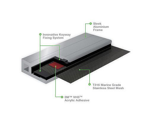 - Mesh infill: High tensile, corrosion resistant, 316 marine-grade stainless steel specifically powder coated for corrosive environments